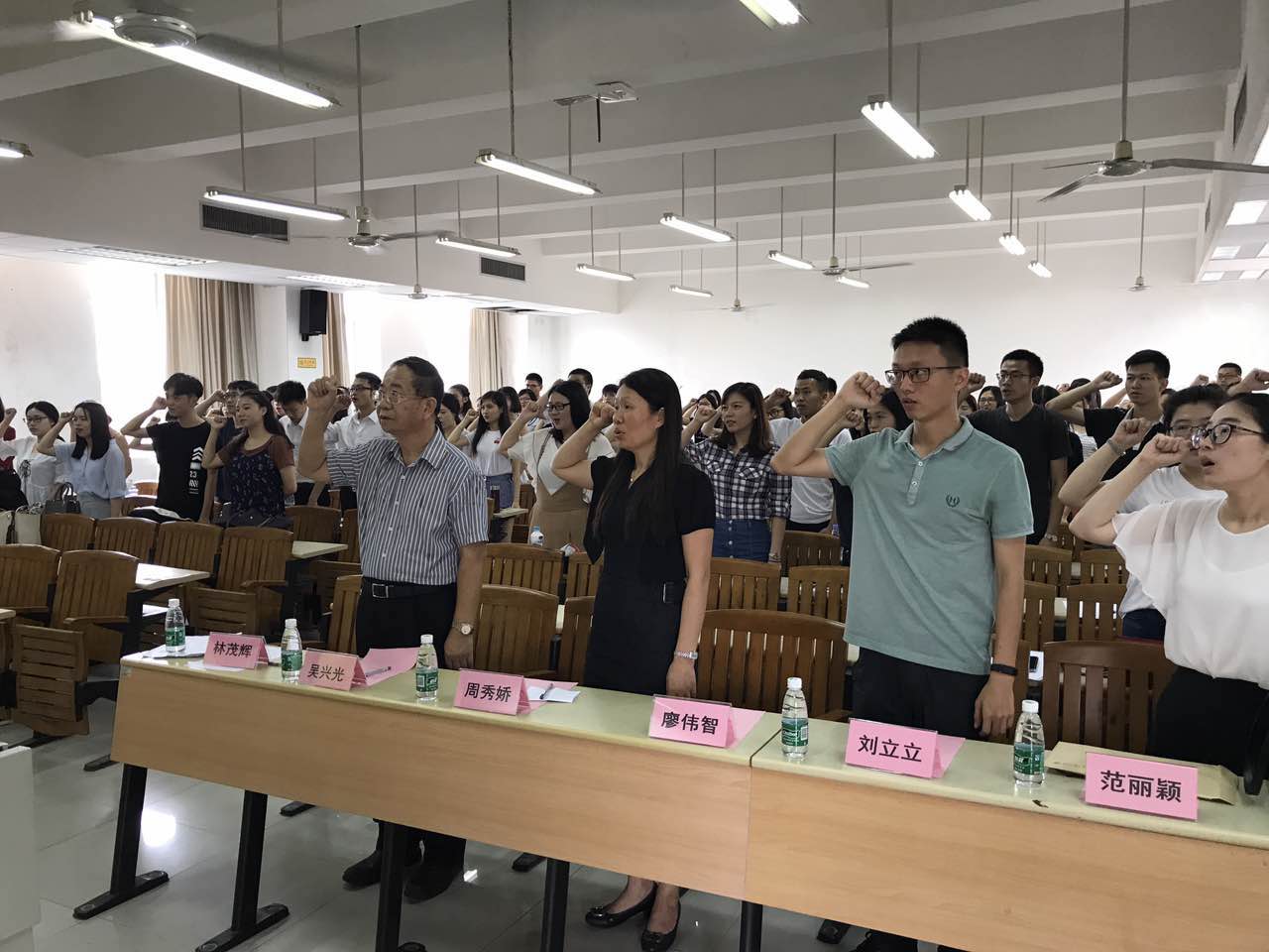 本次活动恰逢“七一”建党纪念前夕,活动伊始,由林茂辉副书记领誓,新党员进行了入党宣誓,老党员重温了入党誓词。