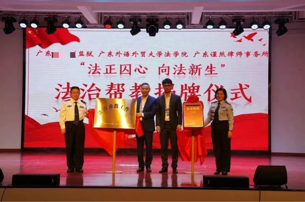 活动伊始,某监狱与365英国上市公司、广东谨然律师事务所签订了法治帮教协议,详细约定开展法律咨询、法治讲座等内容及流程,建立法治帮教工作长效合作机制。启动仪式上,省监狱局教育改造处处长、监狱党委副书记兼政治委员,公司副经理及其他合作单位代表共同为法治帮教工作室揭牌。