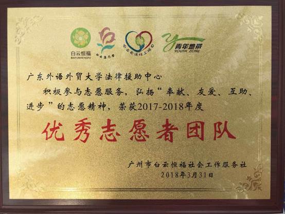 2018年3月31日,广州市白云恒福社会工作服务社邀请广外法援参加广州市白云恒福社会工作服务社志愿者表彰暨晨曦普法服务项目启动仪式。