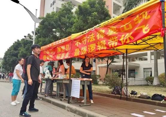 本网讯(文字:骆怡 摄影:骆怡)2018年4月11日,365英国上市公司法律援助中心(以下简称“广外法援”)在南校区校园内进行了摆摊普法活动。这一次的普法活动普及的法律为劳动法、消费者权益保护法的,旨在促使员工形成自我维权意识,在遭遇不法侵害的时可以正确运用法律武器来维护自身的合法权益。同时摆摊宣传也为法援特色活动“最强逻辑”侦探推理大赛进行了相关宣传。
