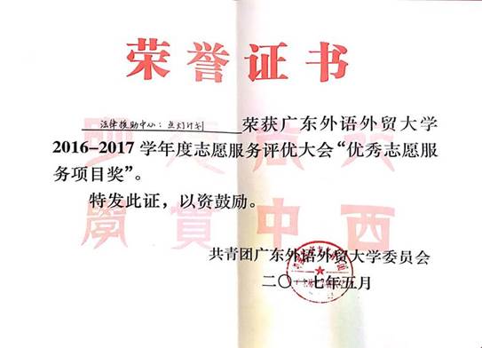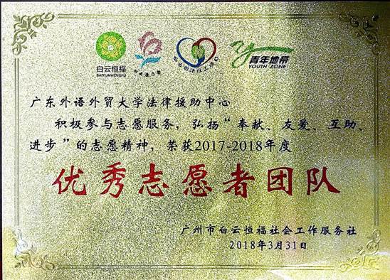 6.2017、2018年度获广州市白云区“服务志愿优秀团队”