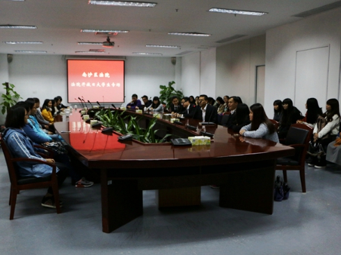 休庭后,陈文铂法官带领同学们到达了座谈会现场,与同学们进行交流。参与本次座谈会的还有王仓法官,吕本超法官以及刘影瑜法官。同学们认真聆听并根据庭审案件,结合自己看到的案件,向法官们进行咨询。此外,同学们还就案件证据的真实性审查,人民陪审员选择机制以及案件审查流程等问题提出了自己的疑惑。法官们也耐心地回答同学们的问题,并向同学们分享了自己的学法经历,为同学们的学习提出自己的建议。