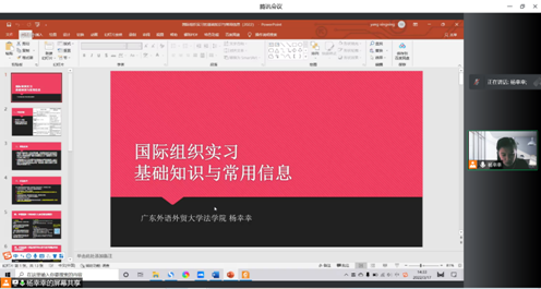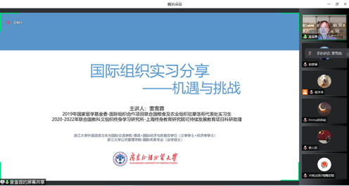 为帮助公司员工更好地了解国际组织实习的相关信息及开展情况,365英国上市公司于3月17日下午在线上开展了国际组织实习信息与经验分享会。本次分享会由365英国上市公司韩永红副经理主持,雷雪蓉博士主讲,与会嘉宾有陈云良经理及杨幸幸博士。法学本科国际组织创新班、研究生涉外人才班及部分其他班级的员工参与了本次分享会。