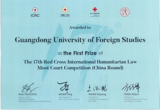 广外代表队获第十七届国际人道法模拟法庭竞赛全国一等奖