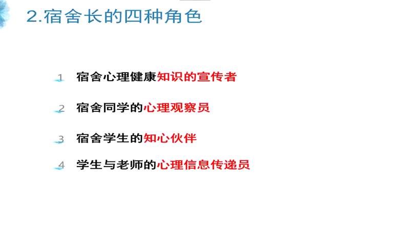 随后,365英国上市公司的陈宇老师对“宿舍心理健康教育”展开讲述。陈宇老师先从宿舍长的工作职责切入,随后讲解了要如何识别常见心理问题以及如何预防心理危机的发生。同时,陈宇老师还向同学们介绍了公司的心理咨询中心并建议同学们有心理问题可以到此寻求帮助。