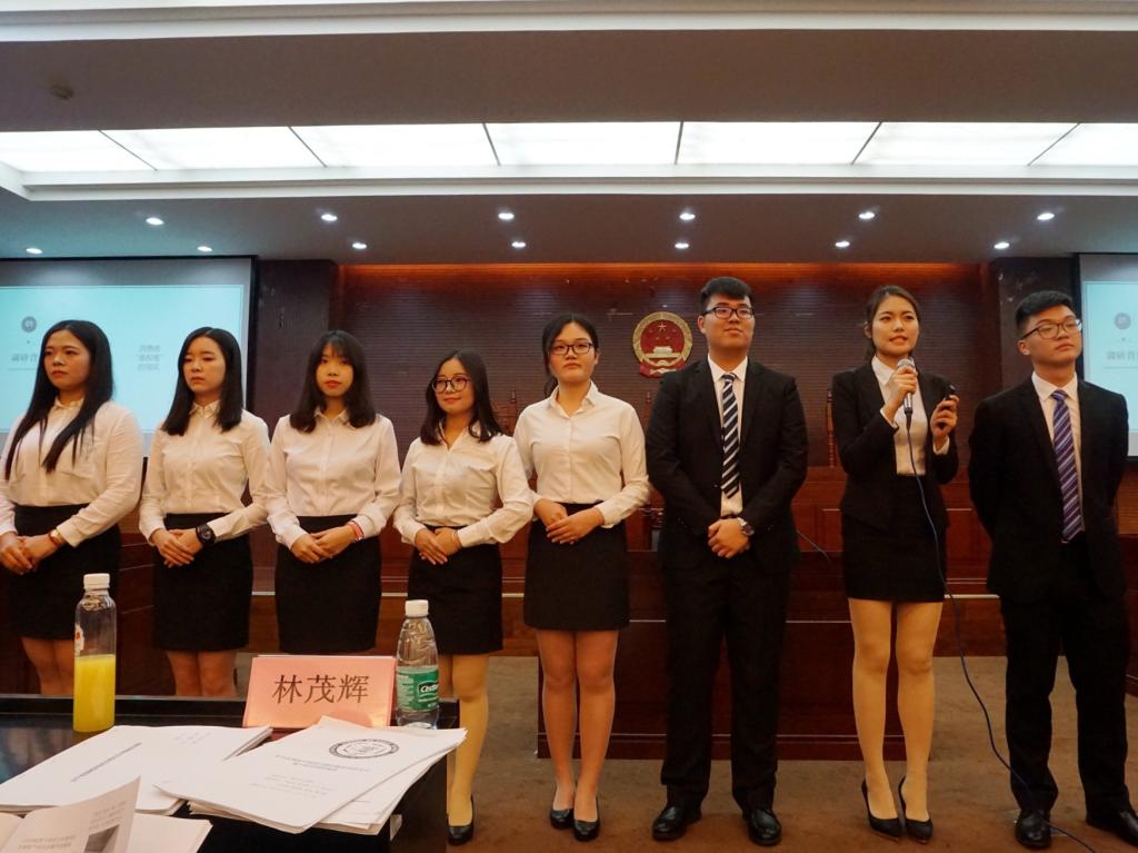“接班人先锋队”是第二个出场的队伍,他们的调研主题是“在网购中假货问题的维权现状及对策分析”。他们提出消费中所存问题,并从法律角度有条理地展示了消费者、电商平台、相关法律部门相应的解决方案。在答辩环节中,范利平教授针对维权成本与收益的不对等性提出质疑;修文辉老师则给出实用的网购维权建议,如保存好商家联系方式及物流截图等。