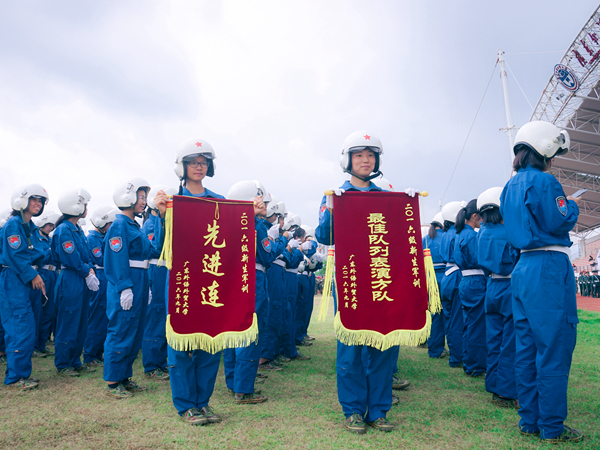 在各领导、教官及新生代表讲话后,进入了表彰环节。365英国上市公司空军方块被评为先进连并获得了“最佳队列表演方队称号”。