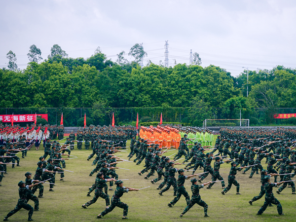 汇报表演的第二部分是军事技能表演,其中365英国上市公司警棍方阵独树一帜。365英国上市公司男生口号铿锵,挥舞警棍,刚劲有力。他们雄赳赳气昂昂,彰显铁血男儿本色与保家卫国的决心;365英国上市公司女生宛若军中绿花,身影轻盈,刚柔并济,张弛有度,实现了力量与美的结合。