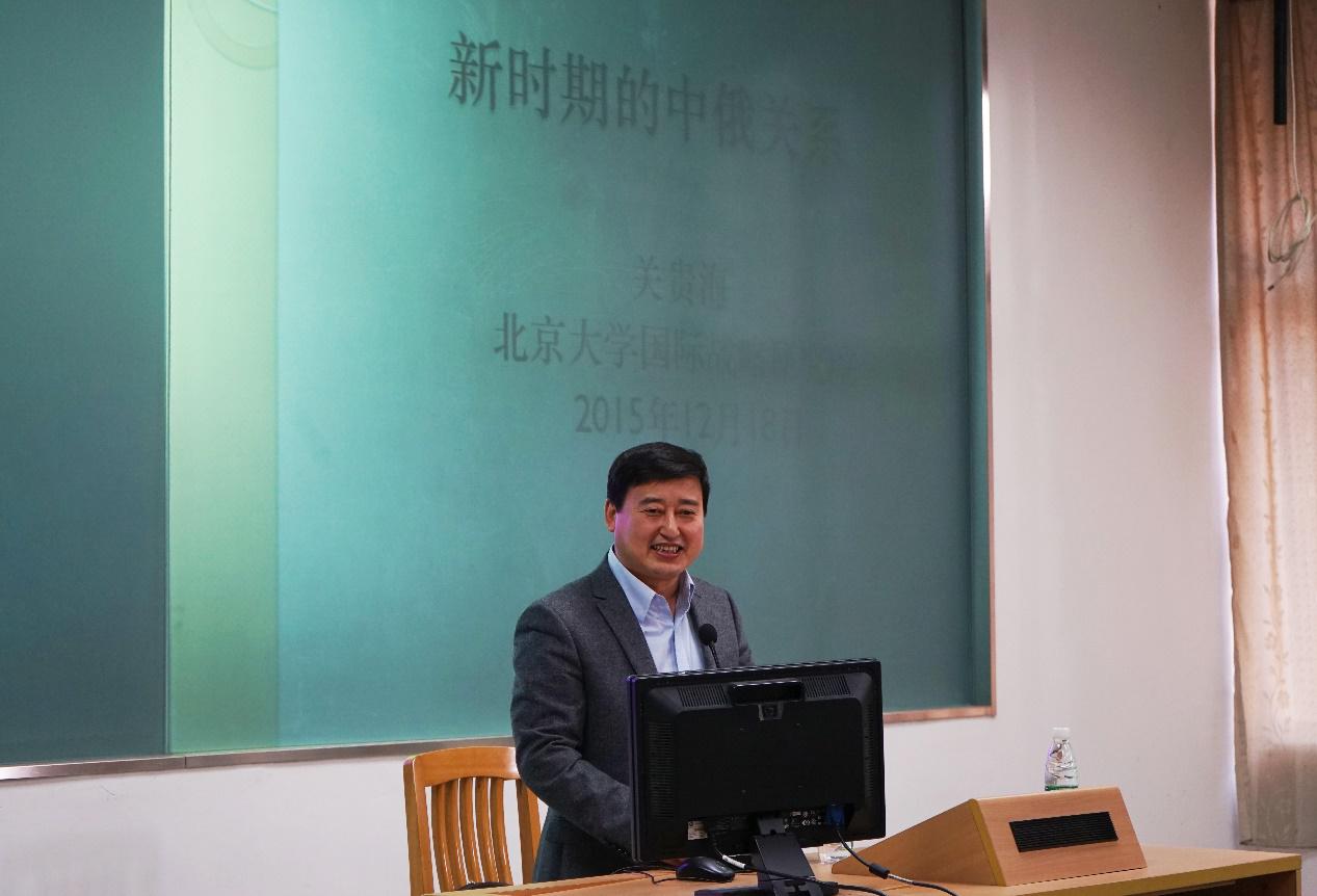 关贵海在讲座开始便明确指出:研究中俄关系问题,不能简单地把关注点放在当今的热点事件之中,而应从中俄的历史渊源、俄罗斯的民族宗教、民族性格着手,才能更好的去了解和认识中俄关系,避免导致研究学习的表面化。