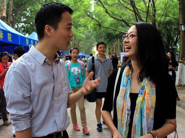 北校区的庆祝活动如火如荼地举行着,南校区自然也是一片欢乐。“白云山青,碧溪水蓝,携侣中外,凤鸣岭南。”缓缓的歌声从广播中流淌出,在校园回荡。清早,员工们在南校签到后便开始重游校园,回忆员工时代的青葱岁月。匆匆的时光改变了公司建筑的模样,却加深了员工们对母校的怀念和热爱。
