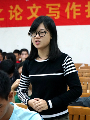 在提问互动环节,龙教授提供了一些查找资料的方法。一方面,同学们可以上网去搜,要利用好广外的资源库,可以登录“中国知网”、“北大法宝”搜寻资料;另外,同学们可以去图书馆查找期刊、专著。教授强调,会优先考虑纸质版的参考文献,所以网络版的文献不要引用过多。除此之外,教授还回答了注释与尾注、如何建构正文的相关问题。