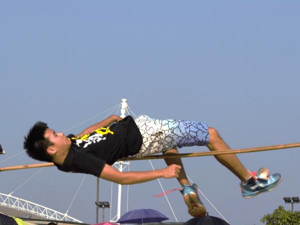 13法一的黄文彬在即将飞跃的那一刹眉头一紧,口中呐喊,拼尽全力,以完美的弧度划过高空,最终成绩定格为1.52m,勇摘季军。15法二的许思奇以无懈可击的表现:1.6m赢得了冠军。女子跳高同样精彩,观众的掌声经久不息,烈日下,运动员们矫健的身姿更显力量与朝气。最终,来自15国政的王旭彤以1.23m获得冠军。