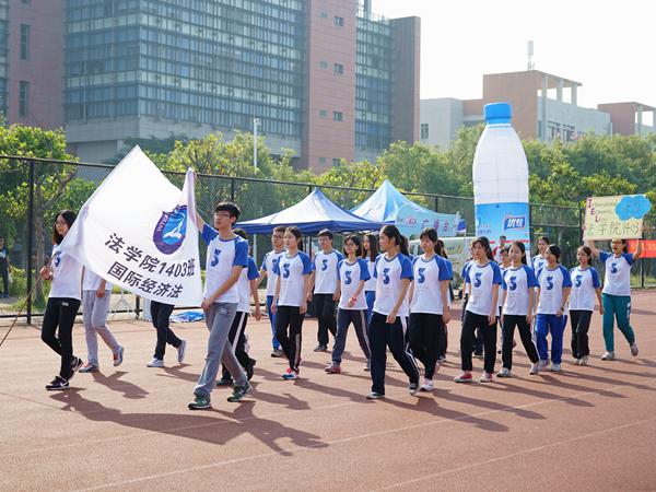 运动员进行曲奏响,每个班级都以朝气蓬勃的面孔,精神抖擞地向主席台走去。作为院运会特色之一的班级文化展示,无不体现了法学学子的多才多艺。各班带来了精彩纷呈的文艺表演,现场掌声、欢呼声此起彼伏。其中15法五的班级舞蹈别出心裁,清新脱俗又不失青春活力。整齐的队伍,极具号召力和感染力的编排让他们赢得了一片叫好。让人惊喜的是,14法三带来了一套广播体操,湛蓝的天空下,他们穿着蓝白的班服整齐划一地做着熟悉的动作。这别开生面的场景既切合了全民运动的主题,又将我们带到高中热血的青春的岁月。在裁判员和运动员代表宣誓后,陈宇老师正式宣布本届院运会开幕。