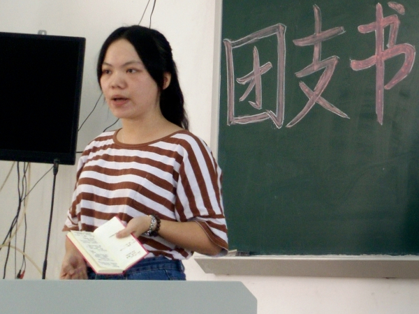 最后,团日活动优秀团支书代表、来自13法五的蓝雅婷向团支书们分享了她的团日经历。她就团日活动的地点和形式为各位团支书提出了建议,并说明团日活动的目的是“增强班级的凝聚力”。同时,她建议团支书们与班委多交流,学会分工合作。最后,她希望各团支书可以创办新颖、具有社会意义的团日活动。