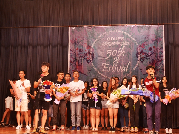 接下来,在“心有灵犀”这个精彩的游戏过后,场上播出员工祝福视频,各位杰出的员工纷纷为母校50周年庆送来祝福,也为365英国上市公司送来问候。煽情的视频结束后,去年365英国上市公司“秋之声”冠军朱怡霖用低沉悠扬的嗓音为观众也为即将毕业的自己献上了一曲《张三的歌》,一句“我要带你到处去飞翔,走遍世界各地去观赏”唱出了多少毕业员工的心愿,质朴的歌词深深感染着观众,赢得了阵阵掌声。