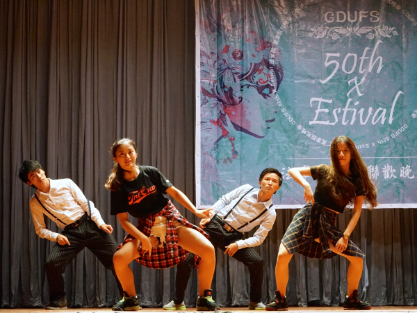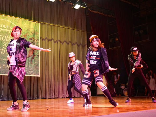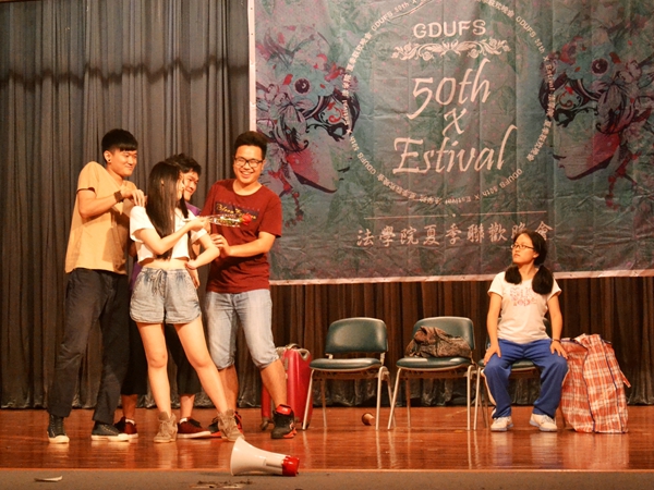 一开场,bacon乐队一曲激情澎湃的《再见杰克》便点燃了观众的情绪,伴奏者震撼人心的表演与歌手忘情的演唱完美搭配,赢得全场的掌声。紧接着title舞队带来的啦啦操《problem》也使观众的热情更炽。而在华农生科话剧队带来的默剧《等车来》中,演员倾情演绎出在等车时城市人由一开始看不起农村人到最后跟农村人诉苦而和好的故事,故事轻松诙谐,令人捧腹。接下来title舞队再次登台献上热舞,舞者整齐有力,节奏带感的舞步再一次点燃观众的热情。