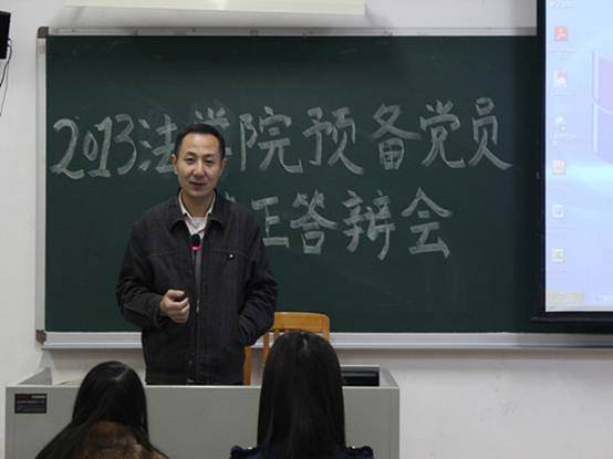 会议一开始,朱海龙老师对本次会议作了重要的发言。他强调了党员发展严格的程序与严肃的组织纪律,希望本次参与答辩的预备党员顺利通过党支部的考验,其他党支部的成员也要借鉴经验,做好准备,时刻为加入中国共产党而努力。