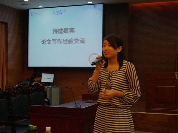 接着是由上届获奖代表分享经验。她们从自身讲起,现身说法,讲述了各自在论文写作中遇到的困惑和积累的经验。其中,何沐凝特别强调了一个好的团队首先要有一个核心人物——队长。一个好的队长必须具备一定的领导能力,能够统筹全局,同时还要不怕“操心”;其次,还要重视组内讨论,聆听、记录并讨论不同的意见和观点,充分发挥团队优势。而黄嘉汶则分享了写论文时的一些注意事项:以所学知识为基础进行写作,做到学有所用;观点要新颖,不要总是复述别人的话。此外,她还赠与观众论文写作的几个关键词:严谨、程序、创新。最后,叶巧珠亦给出了不同的建议。她表示,写论文时要合理规划时间,实现效率的最大化;选题要分类,格式要规范,结构要完整等等。