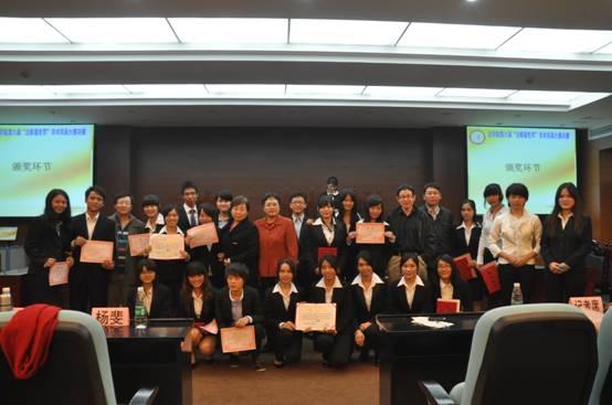 法学的各组展示都拿出了看家本领,竞争十分激烈,最后“五叶枫”以《论有偿认领遗失物制度的建立》为主题的论文夺得冠军。他们以直播访谈间的形式开场,抓人眼球,迅速切入主题,有力的阐述了自己的论文主题。“2012”选择了短剧表演开场,并在论述过程中以模拟法庭的形式进行论述。“L.E.肆界”关于慈善的主题在论坛中得到充分讨论,“佚名惊人”则是更为贴近生活,对于广外法学实践给出了详细的研究报告和建议。“水晶橘子”和“法制公民”都选择了以电视节目的形式作报告展示,无论是前者的“锵锵2人行”还是后者的“法制在线”节目都非常专业化。