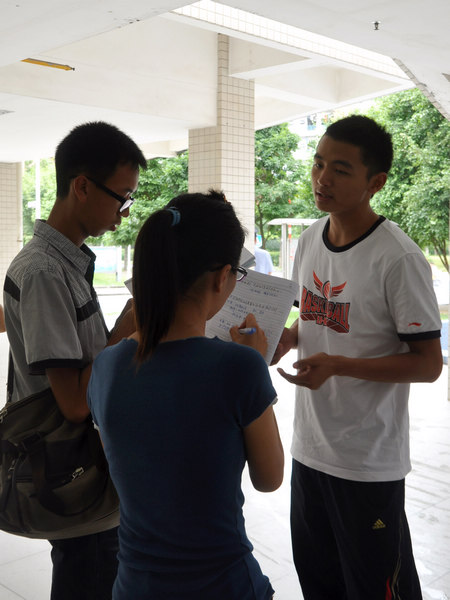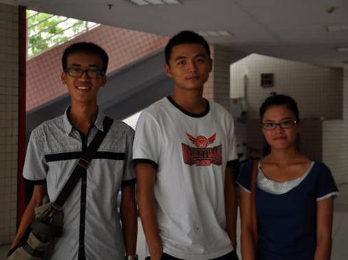 李:我们田径队的训练都是在5:00放学以后,训练时间一般是一个小时,并不会对学习时间造成很大影响,所以参赛的师弟师妹们可以借鉴一下,当然训练时候一定要认真对待,这样才能使训练更有效果。参赛时,适度的紧张感可以使比赛时候保持兴奋感,但过于紧张就会影响发挥,所以参赛者应该以平常心去面对,不要患得患失。