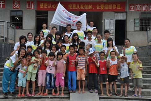 下课后,我们照大合照。有几个娃儿怕羞,觉得眼睛哭得红红的不好看,不肯照,在我们的细细劝说下终于妥协。于是,在蓝天白云下,绿树环绕中,闪光灯一闪,留下了永不磨灭的印记。还有许多小娃儿向我们要QQ、电话,真是希望能早点接到他们的电话。