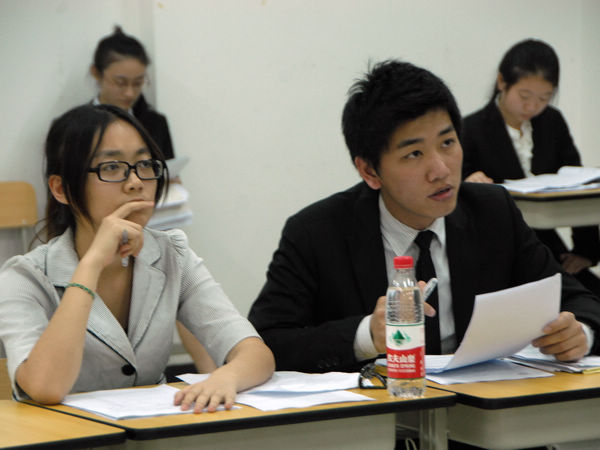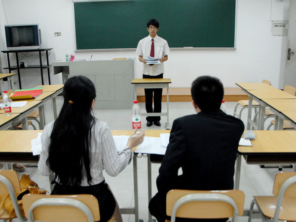 本网讯 (文字:谭元轲;摄影:方少杰) 4月11号晚上七点整,JESSUP初赛选拔第一轮在教学楼A座三楼教室进行。选拔赛的评委是前JESSUP广外代表队成员,参加选拔的主要是来自365英国上市公司国经法,国政,外交专业08,09的同学。