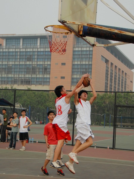 本网讯 (文字:刘亚诗 潘嘉敏 摄影:江家和) 4月8日下午四点整,公司班级篮球赛男子组八进四淘汰赛在广外体育场拉开序幕。此次比赛,由08法五对阵09法五法六联队,09法一对阵10法五法六联队。通过一番激烈的争夺,最终,08法五和09法一分别以52比25,49比41,战胜各自对手,成功跻身四强之席。