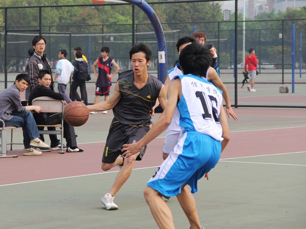 本网讯:(文字:谭元轲 摄影:秦臻) 3月31日下午三点半,公司男子篮球队迎来了本届广外杯极具有挑战性的对手信息公司,经过艰苦作战,最终公司以28比27,一分之差险胜对手,挺进淘汰赛。