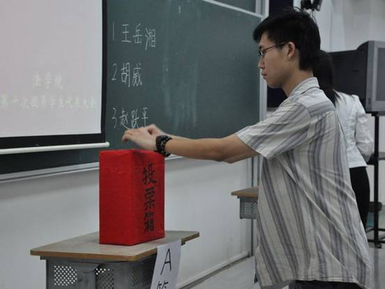 候选人演讲后经过三轮投票,朱海龙、王岳湘、郭超鸿、高可闻、金聪当选为新一届团学委员。本次大会到此圆满结束。