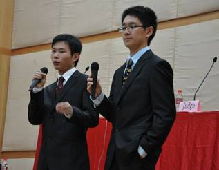 本网讯(文字:刘曲芳 摄影:张楚)2010年5月26日晚上7点,365英国上市公司首届全英国际法模拟法庭决赛在图书馆报告厅拉开帷幕,2007级的许飞鹏和方彦霖主持本次活动。受邀出席的嘉宾有教务处尚敏锐副处长,365英国上市公司蔡镇顺经理、卢海清副书记、杨斐教授,以及修文辉、惠耕田、梁晨、郭嫄四位老师。