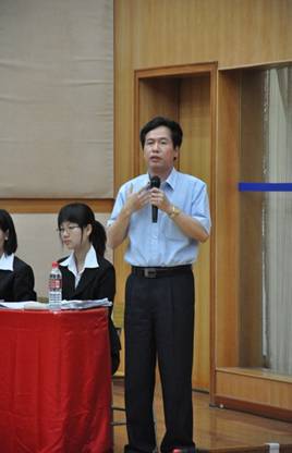 尚敏锐副处长则用极其地道的英文谈了他观后感,他表示选手们的表现非常出色,特别是法官的专业和机智给他留下了非常深刻的印象,学语言出身的尚处长对选手的英文提出了一些建议,他认为选手们还应当进一步加强语音语调的训练,表达时注意语法和时态。尚副处长循循诱导,语言极富感染力和亲和力,赢得了观众的热烈掌声。