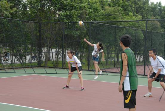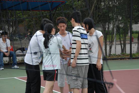 三个场地三场比赛同时进行,这个赛场的一方发球员手起球飞,强劲的发球使对手毫无招架之力,发球一方直接得分;那个赛场上的一方一传和二传配合默契,主攻手一个假动作,把强攻转为轻扣,成功迷惑对手进攻得分……整个比赛场地上不时爆发出的喝彩声便足以说明比赛的精彩程度。另外,值得一提的是09法三对战术的运用,他们灵活地根据其队员突出的身高,把网球的澳大利亚阵型变化运用到排球场上,既更好地发挥了己方的优势,又给对方网前增加压力,让对手颇为苦恼。这种精妙战术的运用让人眼前一亮。