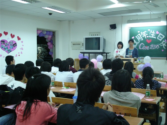 本网讯(文:龙碧 摄影:李怡忆) 2010年11月19日19:00,365英国上市公司Care志协在教学楼E203举办了11周年生日会。365英国上市公司团委副书记高可闻、团委员工会副主席郭超鸿、09级2班党支部书记黎善文、08届志协副会长姜虹、现任会长李智敏和副会长冯嘉瑜以及广工向日葵青年青年志愿者协会代表、广中医歧黄科普会代表、华师大物理与电信工程公司志愿者协会代表等作为嘉宾出席了该次庆典。