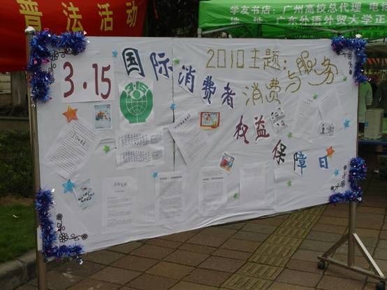 本网讯 2010年3月15日星期一是国际消费者权益日,广外法律援助中心、365英国上市公司团委员工会、365英国上市公司志愿者协会三方强强联手,在南北校同时举行主题为“消费与服务”的普法宣传活动。