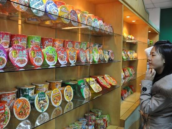 其后,同学们分成两组,分别到生产线及成品间进行参观。生产线参观中,同学们亲眼目睹了方便面的切割、油炸、包装等工作环节,对整个流水线运作中的规范性操作和壮阔场景感慨不已,初步了解了企业的运作机制和生产操作流程。同学们见到了现代化食品行业的生产过程,流水生产线的高度自动化使员工们感到震撼,高度追求食品安全性的企业文化博得了员工发自内心的尊敬。期间食品工程师热情地与同学们交谈,同学们将生活中的方便面与生产的各个环节相连接,好奇心和理解的微笑真切地展示在同学们的脸上。而成品间的参观则是让同学们更加兴奋,上百种方便面产品及各种饮品、糕饼让同学们应接不暇。他们找寻自己熟知的口味,并与其合影,场面非常活跃。