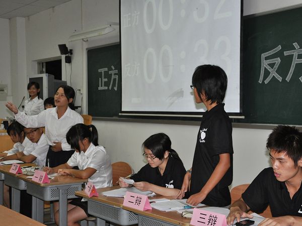 围绕着“个人需要还是社会需要对于老员工择业更重要”,双方从定义、长远发展、可行性等方面展开了一番唇舌较量。相较之下,正方外交班的表现更为突出,从立论、攻辩、自由辩论到总结,环环相扣,步步紧逼,丝毫不放过对方的漏洞,最终一举获胜,其一辩曹慧同时赢得“最佳辩手”称号。