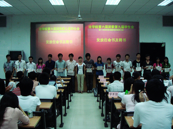 而08级新干事代表丘钰萱同学激情洋溢的演讲则表达了新干事对团学的热爱,和在团学一展身手的热切期望. “感谢团学给予的机会,我们定会踏实工作。”“我们一定能行!”这份自信,来自于充满激情与活力的08新干事。