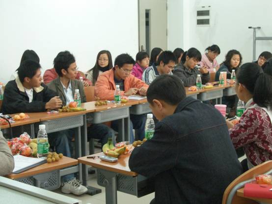 04级2班的党支部书记首先发言。她表示据调查今年年初的雪灾对本班同学的影响不大,而本班的就业情况还算理想,不少同学已经与公司、企业签订了协议,有些同学得到了好几个offer。从随后04级各班的班长或团支书作出的班级就业情况和就业意向报告中同学们也可以看到令人欣喜的现象:已经签订就业协议的同学的去向均不错,包括宝洁、马士基、中国移动、中国银行、IBM、蓝月亮、搜狐网站等知名的企事业单位;一部分参加公务员考试的同学也取得了面试的机会;选择出国的同学也不少,其中也有申请到如华盛顿大学等知名的美国、英国和香港的大学。对于那些目标依然不明确的同学,班委也在努力地给予帮助。