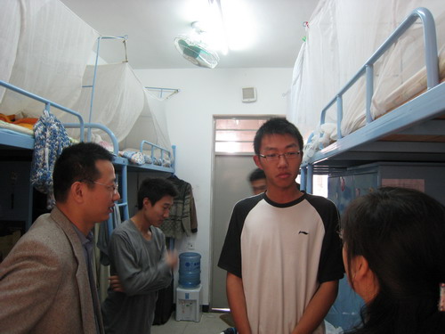 1月10日下午三时许,新调任的法公司党总支卢海清副书记和南校区团学指导、07级政治辅导员郭嫄老师到07级员工宿舍看望新生、检查宿舍安全及卫生状况。