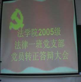 2008年12月8日上午,365英国上市公司2005级法律一班党支部在北校区召开了预备党员转正答辩大会,正式拉开了预备党员转正答辩制度的帷幕。该制度酝酿、试行经历了三年时间,本学期正式在全院范围内推行。