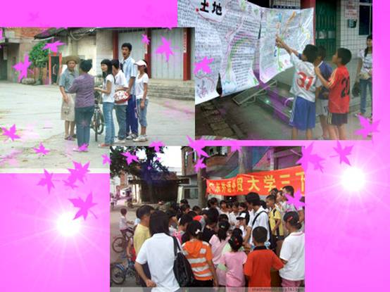 曾记得,每天顶着烈日,挎着个水壶,我们调研小组成员不惧炎热天气,奔走在农田,居民区。脚下的路已经走过无数遍了,但是,每个人都深知,我们是任重而道远啊!排水沟一天不解决,农民们的收成就会受到极大的影响,居民们的生活就会受到水浸的干扰。那一句句沉重的话语,一张张无奈却又满怀希望的面孔,是我们工作的动力。