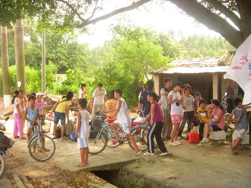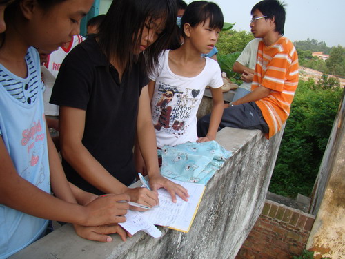 天已经很亮了,睁眼一看,7点钟,发现窗前站着5、6个女生,冠恩在中间,她们表情是那种离别的不舍。原本是今天早上11点离开的,但昨晚晚会回去后临时改了通知,由于车没协商好,今天走不了了。杏媚问:“今天还是这么早过来啊?没吃早餐吧?(孩子们上学大多没吃早餐的习惯)”“老师,我怕来不及见到你们。”来公司送别的员工们都手持一个本子,到处找老师们写联系方式,对角男生同胞那儿围了一堆孩子,我们宿舍也是,还有好多在楼下大树旁等着......这情景,令人感动。