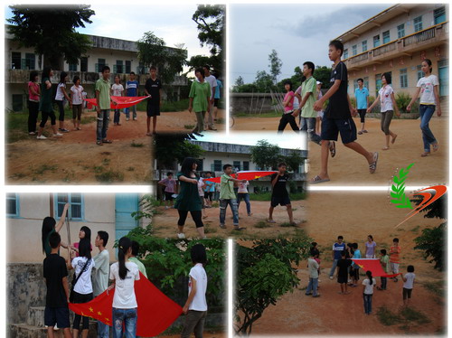 在下乡之前,实地考察的队员了解到了这一情况,便策划在下乡期间决定给小学举行一场隆重的换旗仪式。为了保证升旗仪式的质量,负责的队员在严格选拔出员工之后便对他们进行了升旗仪仗式的培训。由于员工们之前都没有升旗的经验,因此,在训练的时候遇到了种种困难,如,齐步走时无法踩准节奏;手脚不协调;旗手之间动作不一致;升旗时不会打结等等。但是,通过大家的协作以及董事长的大力帮助,问题也都迎刃而解了。训练到当日黄昏时候,白沙小学的第一支升旗队终于能比较规范地进行一次升旗了。