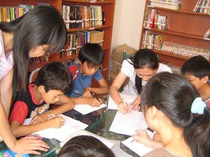 生源暂时不多,班制教学是 “一对一”,“一对几”的辅导方式。这种方式对不同年龄层的员工而言更有针对性,更能发现员工存在的问题。第一天义教组先开了一堂英语课试教。根据不同年级因材施教,通过基本的学英文字母到英文对话调动了员工的积极性,增加了其学习的热情。