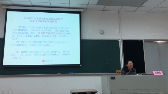 吴幼珍向同学们分享了2019年广州市城镇就业人员年平均工资情况