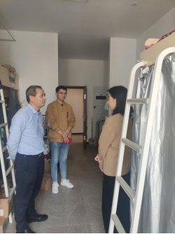 为落实公司帮扶政策,进一步了解员工学习生活情况,扎实做好新学期员工工作,3月1日,法公司党委书记杨敏生代表公司党政领导班子与研究生辅导员陈珂等前往知识城员工公寓看望了员工代表,为他们送去了公司的关爱和问候,并送上了健康防疫物资等慰问品。