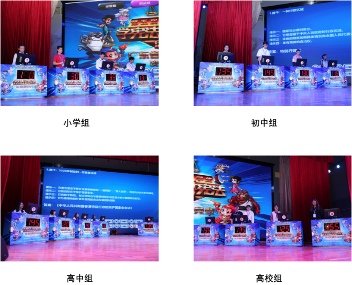 知识竞赛决赛共分为小学组、初中组、高中组和高校组四个组别进行,每组分别8位选手晋级。决赛于13日下午和14日下午分四场进行,每场有必答题和抢答题两个环节,考查重点宪法基本知识和实际应用能力,考点同时涉及民法典、环境保护、未成年人保护、预防未成年人犯罪、防范校园欺凌、国家安全等相关内容。