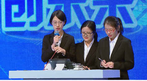 在当天下午进行的决赛中,设置了“狭路相逢”、“过关斩将”、“一锤定音”三道关卡,每关分设两轮比赛,有集体必答题、抢答题与主观题。题目类型复杂多样,有是非题、单选题、多选题、填空题和主观讨论题,参赛队伍通过闯关形式晋级。各队参赛选手都积极参与,比赛现场紧张刺激。广外代表队的三名同学沉着冷静、齐心协力,展现了扎实的理论知识,以全场最高分350分的总成绩摘得团队特等奖。