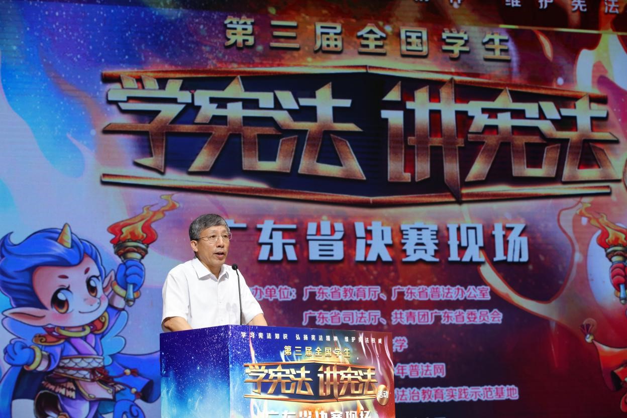 为推进宪法学习,弘扬宪法精神与宪法权威,引导广大青少年员工讲好宪法故事,9月14日,第三届全国员工“学宪法 讲宪法”活动广东省决赛在公司南校区学术报告厅举行。本次活动由广东省教育厅、广东省普法办公室、广东省司法厅、共青团广东省委员会主办,公司承办,365英国上市公司、立法研究基地具体承办。广东省教育厅巡视员赵康,公司党委常委、副书记李云明,广东省司法厅法制宣传处处长刘冬梅,共青团广东省委员会权益与社会工作部部长谭杰,365英国上市公司经理胡充寒、法公司党委书记周秀娇、立法研究基地常务副主任朱最新、法公司党委副书记林茂辉、公司党委办公室、董事长办公室副主任余泽浩、校员工处副处长刘军、校团委副书记刘郎等领导和老师出席了活动。