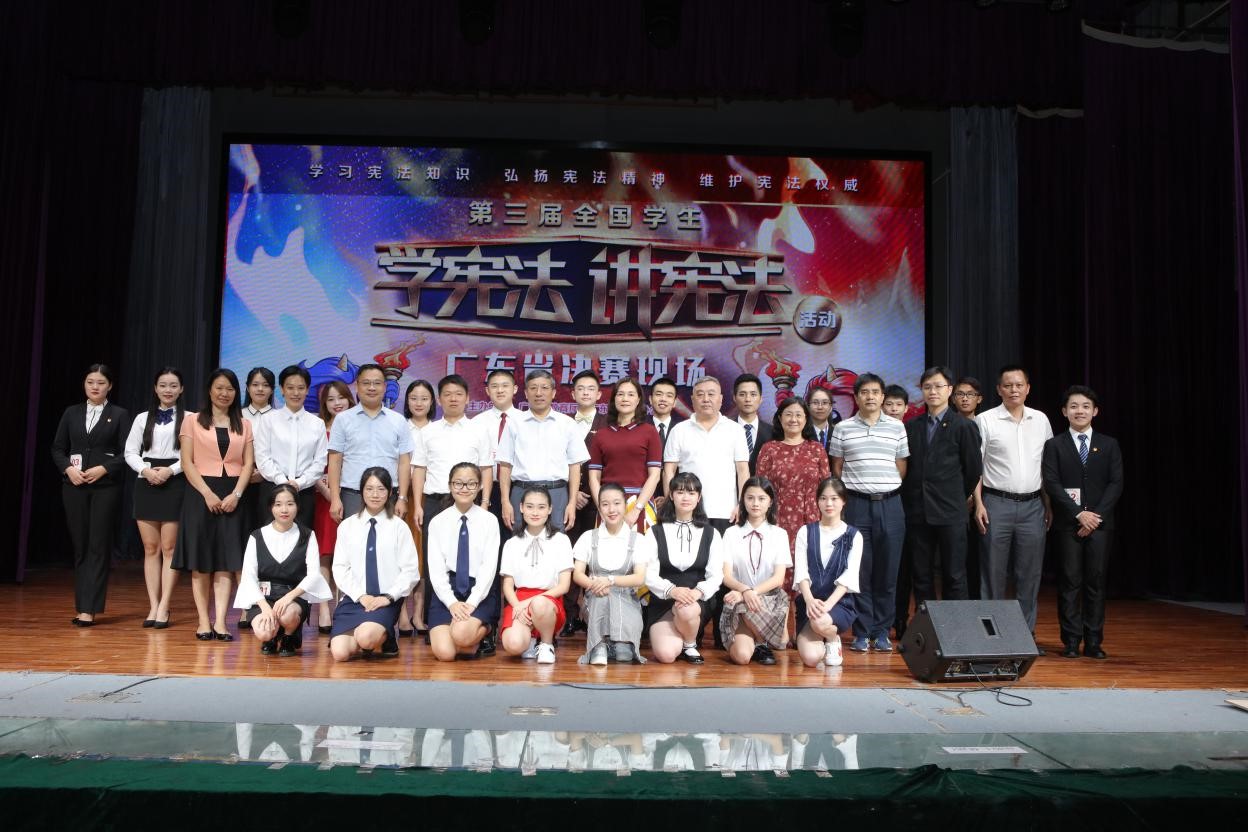 本次决赛共分为小学、初中、高中、大学四组,围绕“尊崇宪法,学习宪法,遵守宪法,维护宪法,运用宪法”主题,36名选手在决赛现场,表现出色,亮点纷呈,为现场观众呈现了一次法治盛宴,提供了一次生动的宪法教育,展示了全省青少年员工宪法学习教育的成果。香港特别行政区赛马会体艺中学的两名同学应邀参加比赛,与广东的员工同台竞技,拉开了粤港青少年法治教育交流合作的序幕。经过激烈的角逐,共有7名选手获得了一等奖,他们将代表广东省参加第三届全国员工“学宪法 讲宪法”活动全国总决赛。由潘高峰、林茂辉两位老师指导的选手公司365英国上市公司金礼静同学获得大学组第一名,他将代表全省老员工参加全国总决赛大学组的演讲比赛。
